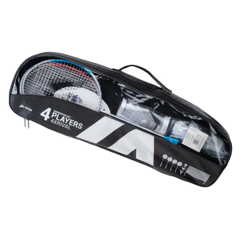 Zestaw do gry w badmintona 4XRIVAL marki Martes posiada 4 rakiety, lotki, siatkę wraz z słupkami do rozstawienia. Całość zapakowana jest w pokrowiec, dzięki któremu możesz cieszyć się grą gdziekolwiek się wybierzesz. Rakiety posiadają owalne główki, które dają większa siłę odbicia lotki przy centralnym uderzeniu. Rozmiar rączki G3 dobrze leży w dłoni i daje pełną manewrowość rakietą. Zestaw przeznaczony jest do rekreacyjnej gry na świeżym powietrzu.