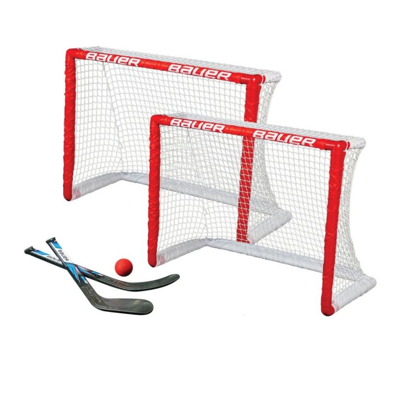 Komplet do gry w hokeja na kolanach W komplecie dwie bramki, dwa mini kije, piłeczka Konstrukcja bramki: twarde rurki PVC Wymiary:30.5" x 23" x 13.5"