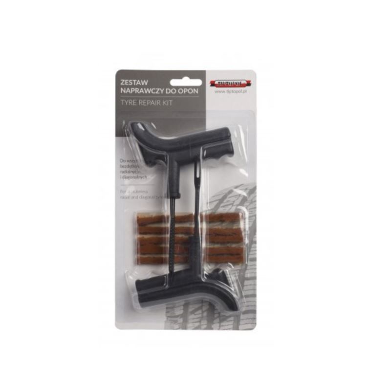 Za pomocą zestawu, który składa się z 5 szt. sznurów brązowych grubych o długości 10 cm, frezu oraz szydła do wprowadzania sznurów możliwa jest samodzielna naprawa opony bezdętkowej, która została przebita gwoździem. Sznury znajdujące się w zestawie służą do tymczasowej (doraźnej) naprawy przebić w czole opony bez konieczności jej demontażu.