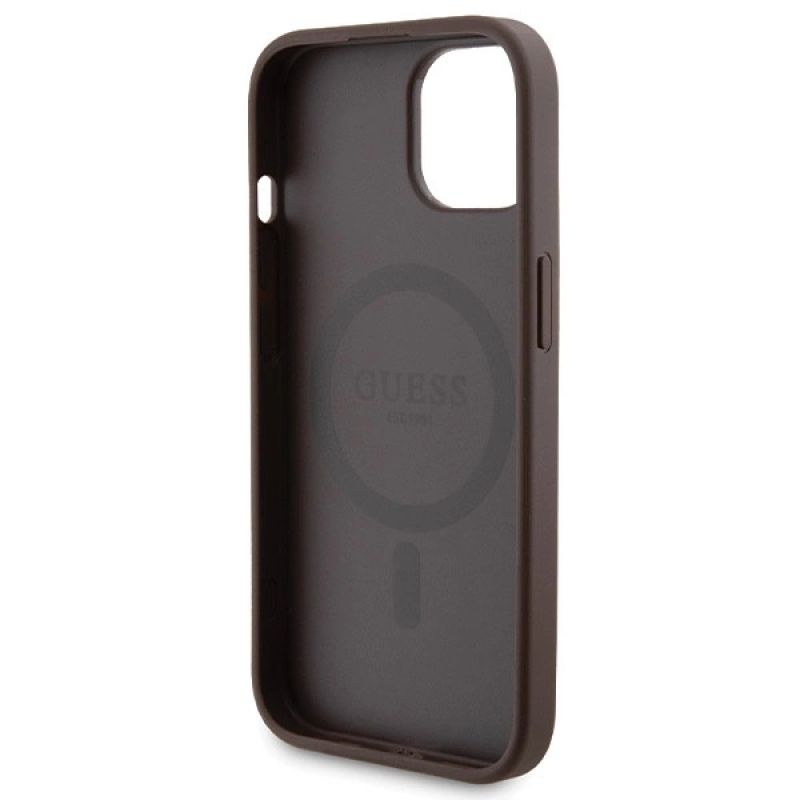 Zestaw etui Guess 4G Metal Logo na iPhone 15 + powerbank 5000mAh MagSafe - brązowy