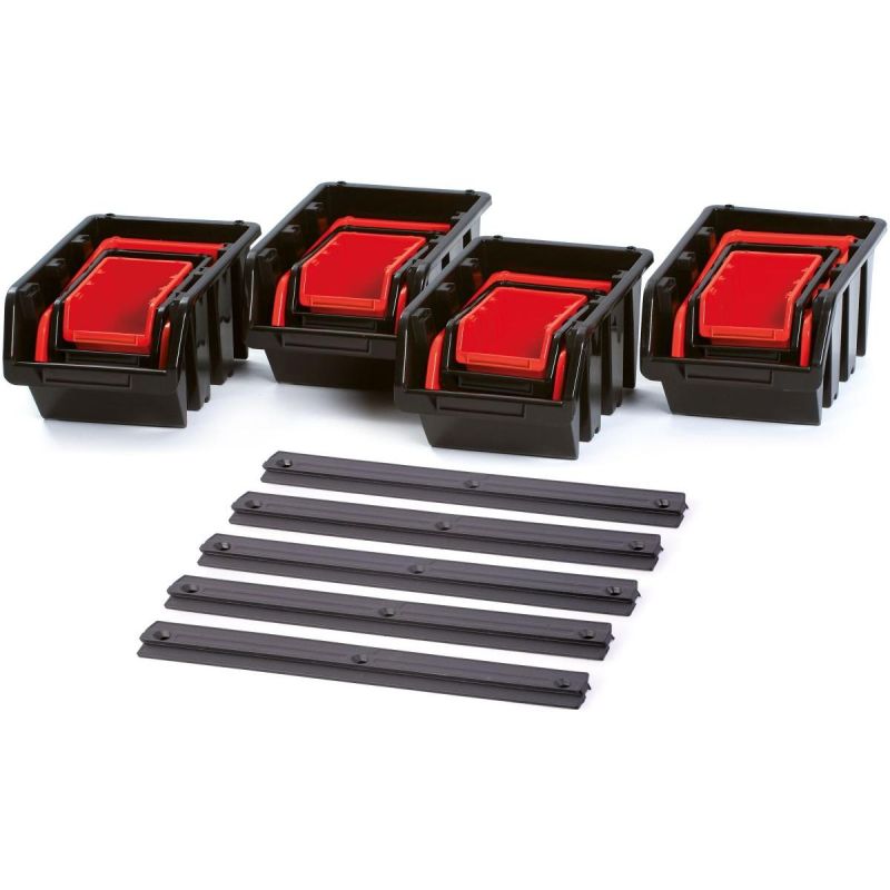 - W zestawie: 5 listew montażowych, 16 pojemników warsztatowych.