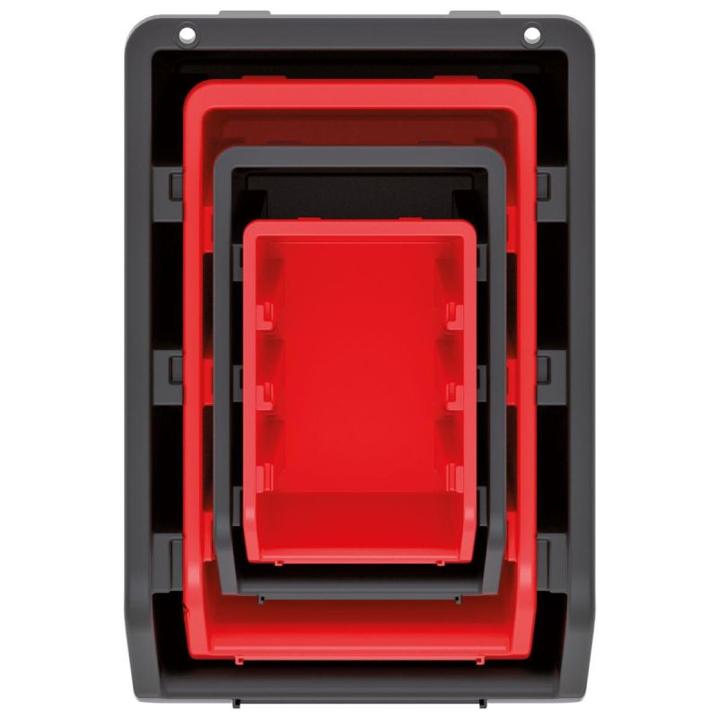 Jest uniwersalny, zawiera 16 pojemników o różnych pojemnościach w dwóch kolorach i 5 listew montażowych na których zawiesisz pojemniki w dowolnej konfiguracji.