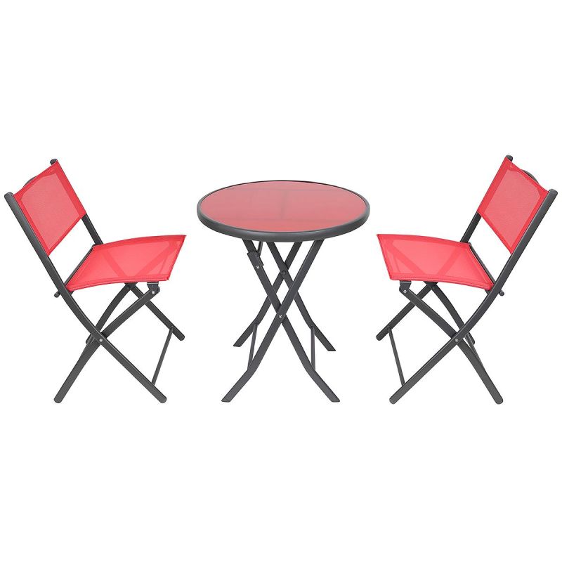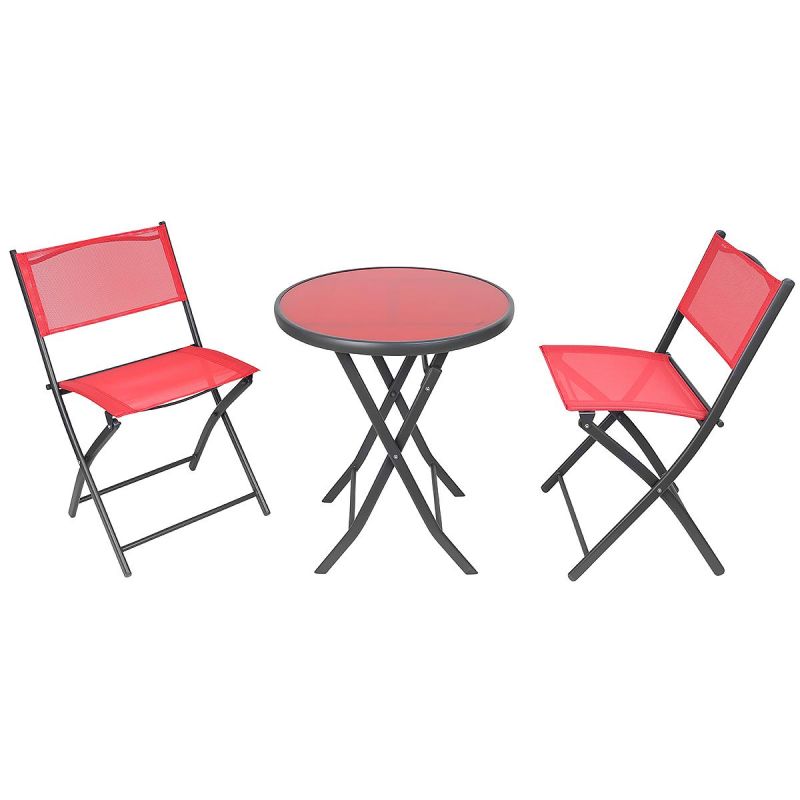 ZESTAW MEBLI BALKONOWYCH STOLIK OKRĄGŁY I 2 SKŁADANE KRZESŁA CZERWONY
