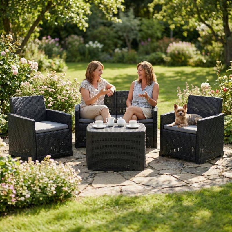 ŁATWA PIELĘGNACJA - powierzchnia mebli jest prosta w utrzymaniu czystości. Wystarczy przetarcie wilgotną ściereczką. Idealne rozwiązanie do codziennego użytkowania na zewnątrz.
