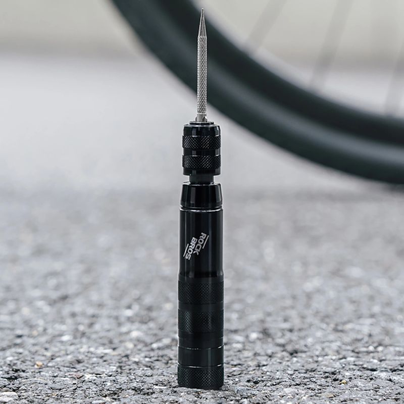 Zestaw naprawczy Rockbros do opon bezdętkowych to kompaktowe, solidne i niezawodne narzędzie, które każdy rowerzysta powinien mieć pod ręką. Wykonany z wytrzymałego stopu aluminium i wyposażony w elementy z hartowanej stali węglowej, pozwala na szybką i skuteczną naprawę opon tubeless w każdych warunkach. Dzięki trzem końcówkom narzędziowym oraz pięciu taśmom uszczelniającym z wysokiej jakości gumy wulkanizowanej, radzi sobie z różnorodnymi awariami. Wszystko mieści się w jednej, lekkiej i poręcznej obudowie z gwintowaną pokrywą, która zapewnia ochronę przed kurzem i wodą. Ergonomiczny uchwyt z antypoślizgową strukturą ułatwia obsługę, a system szybkiego montażu sprawia, że jesteś gotowy do działania w kilka sekund. To niezastąpione rozwiązanie zarówno na codzienne przejażdżki, jak i podczas długich wypraw terenowych.
