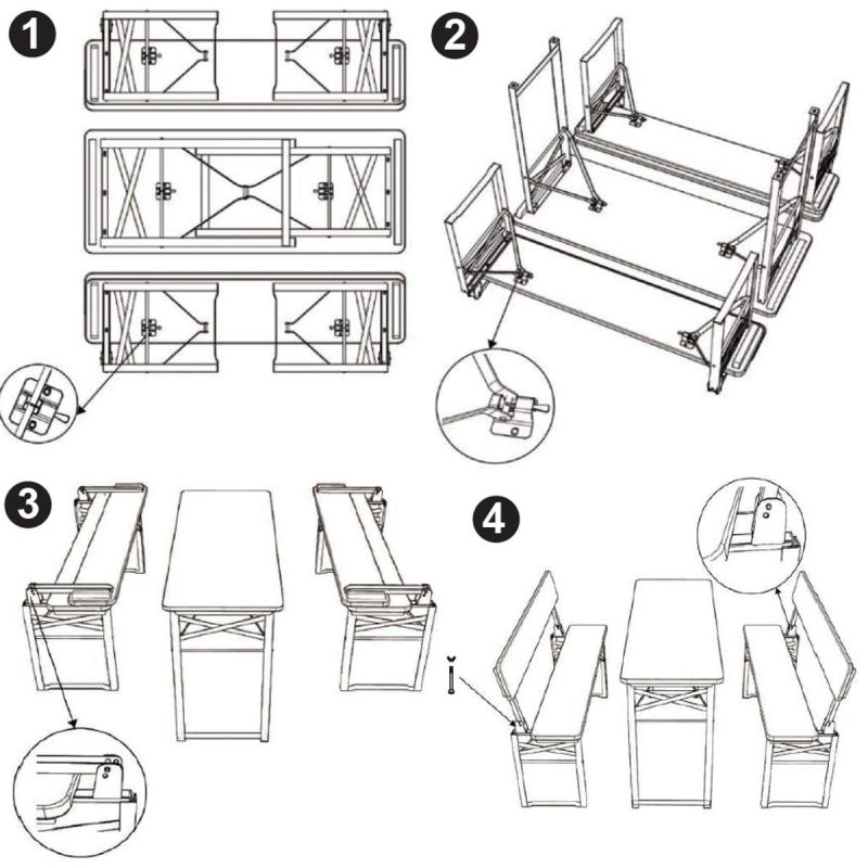 Cały zestaw czyli stół i 2 ławy został zaprojektowany tak, aby po złożeniu zajmował niewiele miejsca, dzięki czemu jest łatwy w przechowywaniu i transporcie. Dodatkowo specjalne blokady w stelażach zadbają o Twoje bezpieczeństwo podczas użytkowania.