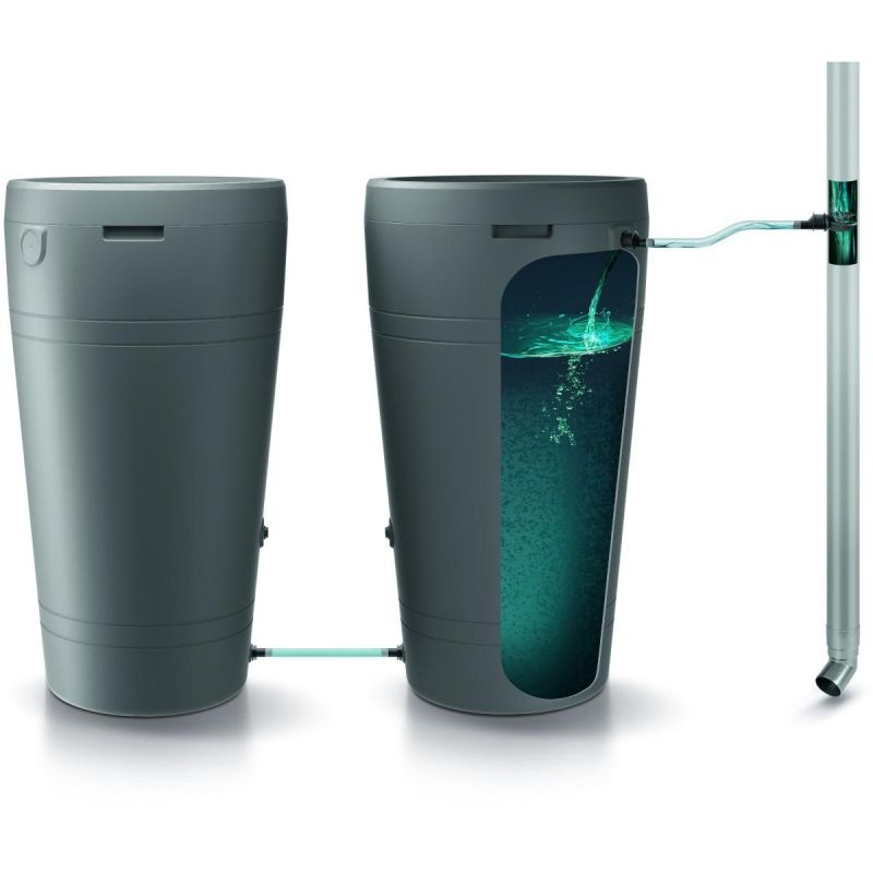 - wzbogacony o filtr zewnętrzny filtrujący wodę przedostającą się do zbiornika z rynny