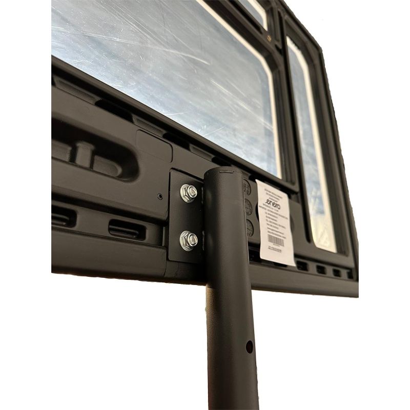 Tablica została osadzona w mocnej podstawie, która wypełniona wodą lub piaskiem dobrze utrzyma zestaw podczas gry, a specjalne kółka transportowe pomogą Ci przestawić go po zakończonej grze w dowolne miejsce.