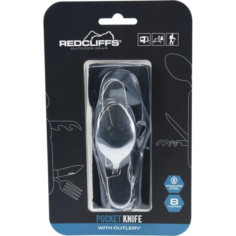 Scyzoryk RedCliffs 8w1 łączy w sobie najważniejsze narzędzia potrzebne podczas biwakowania i podróży: widelec, łyżkę, nóż, korkociąg, otwieracz, piłę i funkcje pomocnicze. To praktyczny niezbędnik do codziennych zadań w terenie. Sprawdzi się zarówno podczas górskich wypraw, jak i weekendowych wyjazdów.