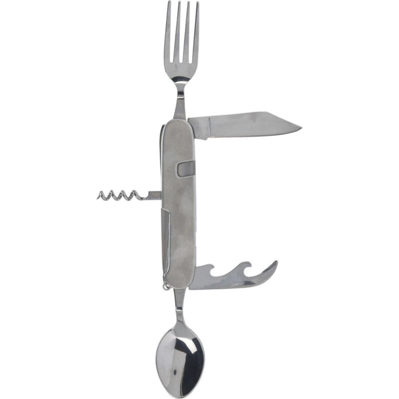 - Funkcje: korkociąg, nóż, otwieracz do butelek, otwieracz do puszek, widelec, łyżka, szpikulec do tworzenia dziurek