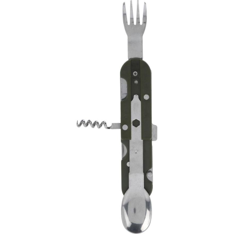 - posłuży jako nóż, otwieracz do butelek, korkociąg, łyżka, widelec, posiada też kółko do kluczy