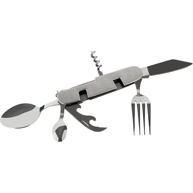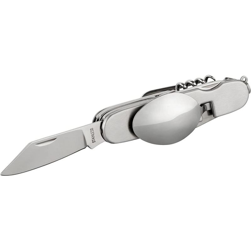 - Ilość funkcji: 6 (nóż, mała łyżeczka, łyżka, widelec, korkociąg, otwieracz do puszek)